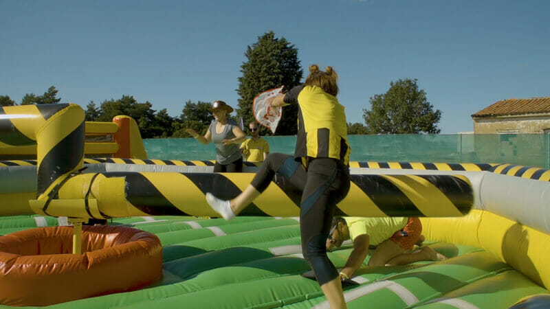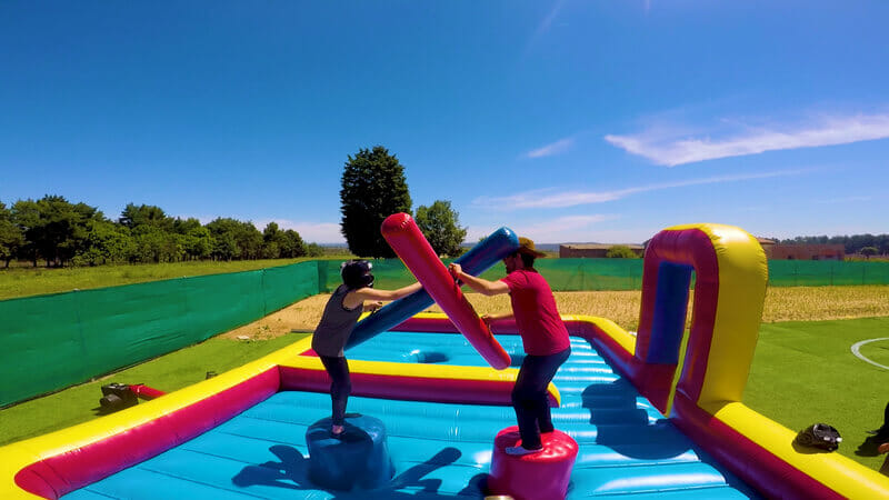 En nuestra actividad de Humor Amarillo te espera un circuito lleno de pruebas disparatadas, hinchables gigantes, obstáculos que se mueven (¡demasiado!), pelotas que vuelan desde todas partes y retos que ponen a prueba tu habilidad… y tu sentido del humor.