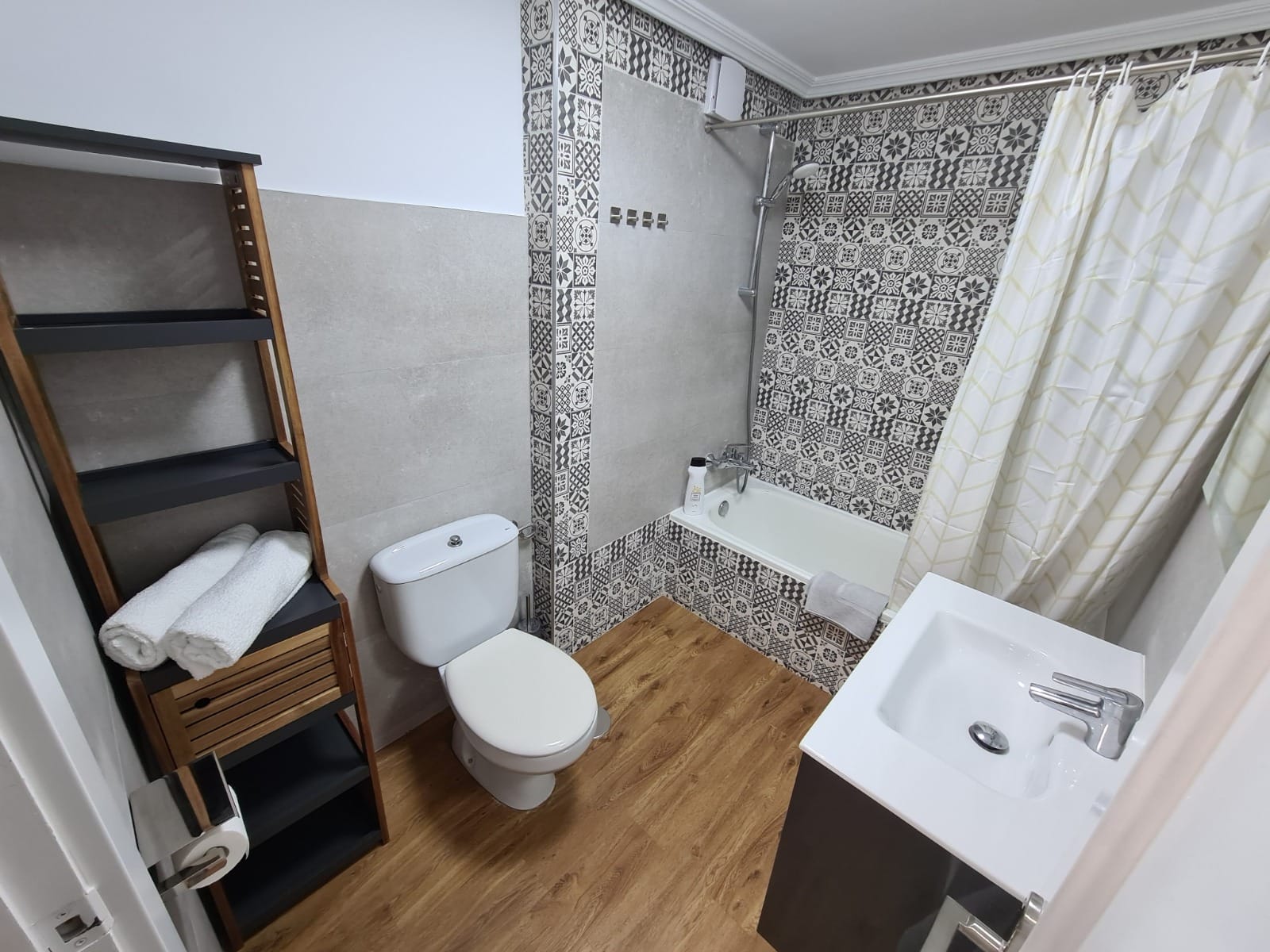 3 habitaciones, salón, 2 baños, cocina completa.