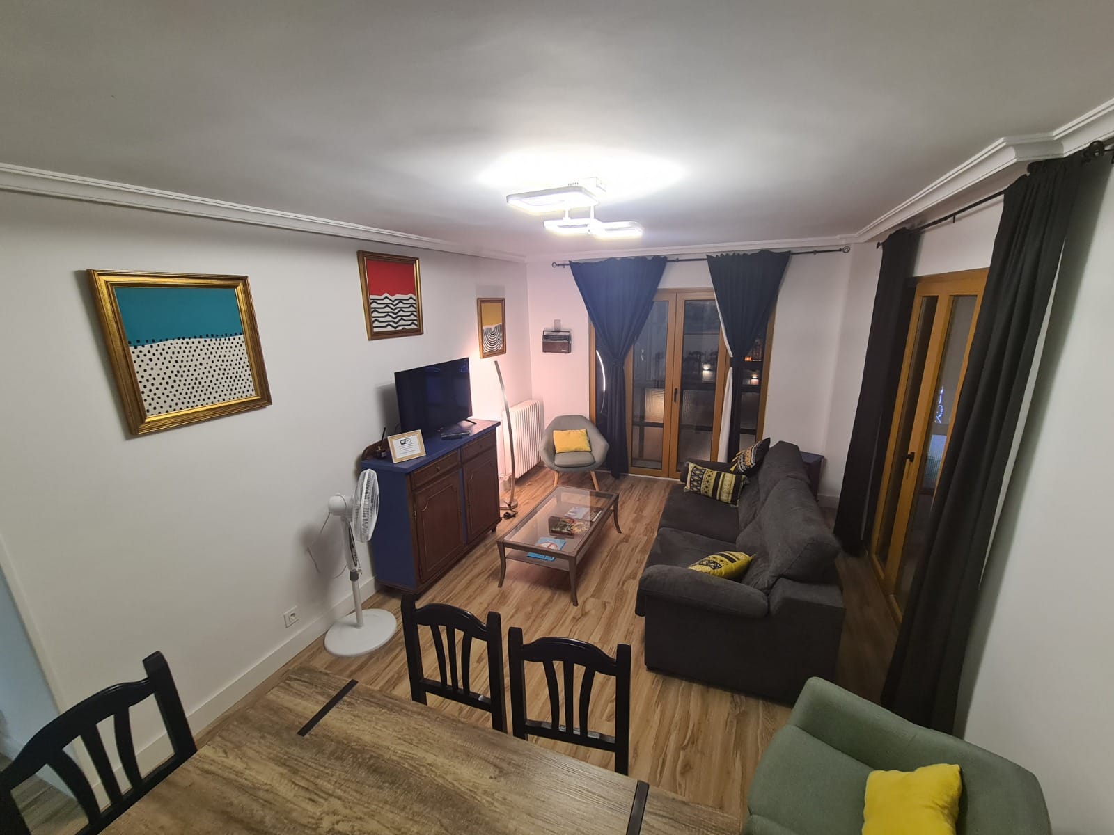 Dispone de aire acondicionado en el salón.Las ventanas tienen la máxima protección acústica muy importante para descansar en el barrio húmedo.